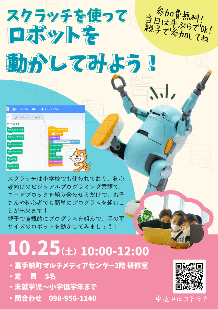 スクラッチを使って手の平サイズのロボットを動かすプログラミング講座を開催します!!